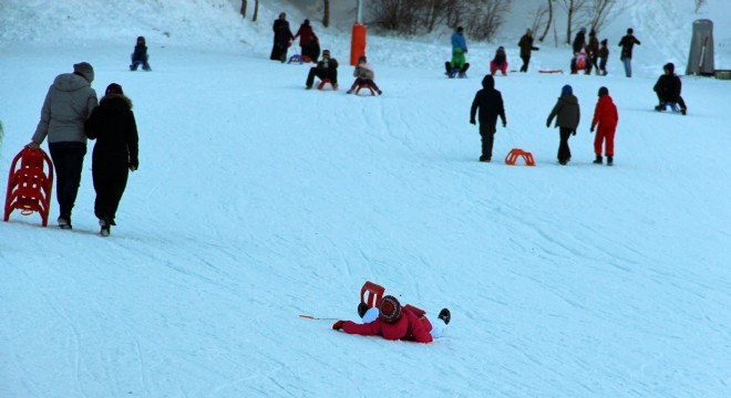 Yerli ve yabancı turistler, aileleriyle kızak, kayak ve snowboard yapmanın keyfini yaşadı.