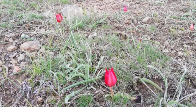 Erzurum’da havaların ısınmasıyla birlikte laleler açtı.