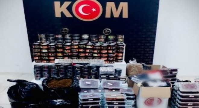 130 kilo açık nargile tütünü, 107 kilo kıyılmış açık tütün, 2 bin 110 adet doldurulmuş makaron sigara ve 348 paket nargile tütünü ele geçirilerek muhafaza altına alındı.