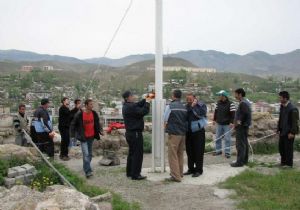 Oltu Kalesi’nin gönderinde dalgalanan 5 metrekarelik bayrak direği esen rüzgarın şiddetine dayanamadı. Şiddetli esen rüzgar bayrak direğinin bağlı olduğu çelik halatı kopardı. Oltu Belediyesi zabıta ekiplerince bayrağın yeniden yerine dikilmesi için çalışma başlatıldı. Bağlı olduğu çelik halatı kopan 12 metrelik bayrak direğini yere indirmeye çalışan işçiler zor anlar yaşadı. Direği yere indirmeye çalışan işçilerin güçleri yetmeyince bayrak direği hızla yere çarptı. Çarpma sonucu direğin iki bölümünde
