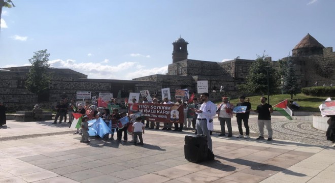 Erzurum Kalesi meydanında toplanan sağlık çalışanları Türk ve Filistin bayrakları eşliğinde yürüyüş yatıktan sonra basın açıklaması yaptı. Eylemde katılımcılar ABD kongresini de alkışlarla protesto etti.