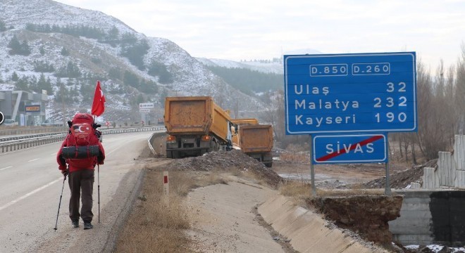 67 yaşındaki emekli dağcı Osman Kemal Ağaoğlu, “Mustafa Kemal Atatürk’ün İzlerinde Samsun’dan Ankara'ya” olarak adlandırdığı yürüyüşünün son etabını Sivas’tan başlattı.
