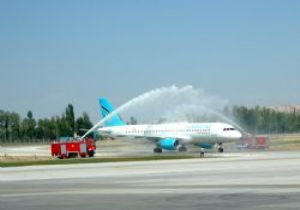 Turkuaz Havayolları tarafından Ankara-Van arası düzenlenen ilk uçak seferi bugün gerçekleşti.Ankara'dan kalkan ve saat 11.35 sıralarında Van Ferit Melen Havaalanı'na iniş yapan uçak, piste bekletilen itfaiye araçlarının su sıkması ile karşılandı. Daha sonra aprona yanaşan uçaktan ilk olarak inen Turkuaz Havayolları Yönetim Kurulu Başkanı ve Genel Müdürü Hidayet Aydoğan, Türkiye Seyahat Acenteleri Birliği (TÜRSAB) Van Bölgesel Yürütme Kurulu Yönetim Kurulu Başkanı Abdullah Tunçdemir ve beraberindekiler tarafından karşılandı. Yolculara birer karanfil verilirken, Hidayet Aydoğan ise alana getirilen