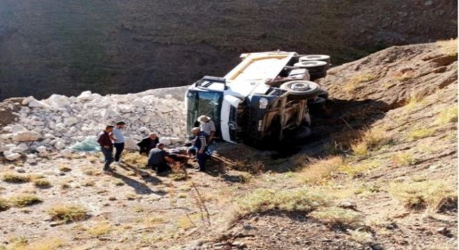 Taş yüklü kamyon şarampole devrildi: 1 yaralı