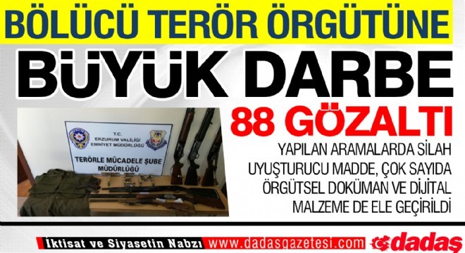İçişleri Bakanlığı, aralarında Erzurum'un da olduğu 7 ilde PKK/KCK terör örgütüne yönelik operasyon düzenlendiğini ve bu operasyonlarda toplam 88 şahsın gözaltına alındığını açıkladı.