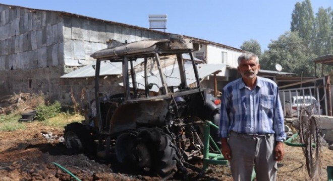 400 bin liralık zararı olduğunu ifade eden Önal, “Saat 02.00 sularında traktörün alarmı yanınca şase yaparak çalmaya başladı. Uyandığımda alevler içinde yanıyordu. Traktörü benzin döküp yakmışlar, giderken de 50 metre ilerde 850 balya otu aynı şekilde ateşe verip gitmişler. Bütün yaz çalıştım çabaladım, 850 balya ot biriktirdiğim traktörümle birlikte bütün emeğimi yaktılar. Hayvanlarımın bütün yiyecekleri gitti. 50-60 civarında malım var, otum kalmadı, nasıl olacak bilmiyorum. Şu anki zararım 350-400 bin lira civarında” dedi.