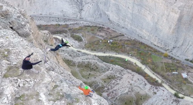 "Sakin Kent Uzundere" yabancı ekstrem sporcularının gözdesi oldu. Rusya’dan Türkiye’ye gelen 9 ekstrem sporcusu, ilçede daha önce belirlenen yüksek sıradağlardan görenlerin adeta nefesini kesen serbest uçuş ve paraşütle atlama gerçekleştirdi.