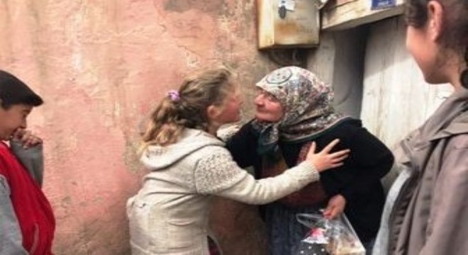 Ziyaretlerden duydukları memnuniyet gözlerine yansıyan yaşlılar mutluluklarını öğretmen ve öğrencilere sarılarak gösterdiler.
