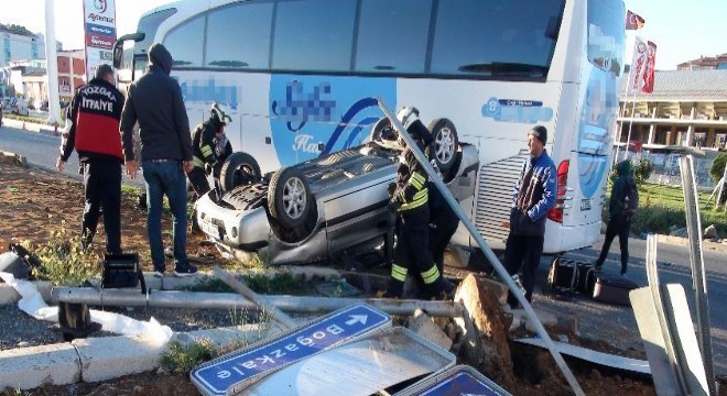 Yolcu otobüsü ile otomobil çarpıştı: 3 yaralı