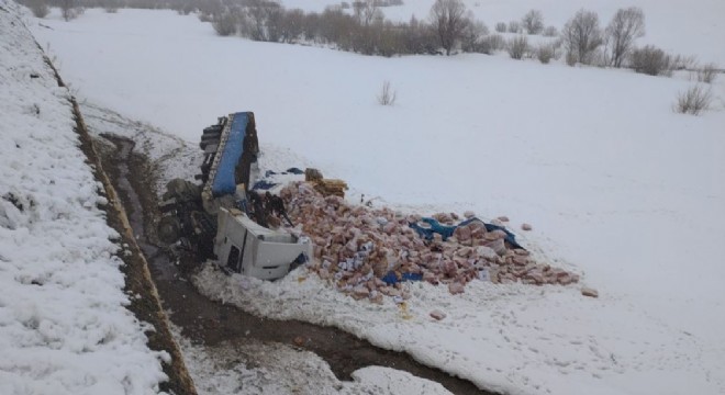 Bingöl’ün Karlıova ilçesinde yoldan çıkan tır, yolun 4 metre aşağısına düştü, sürücü yaralandı.