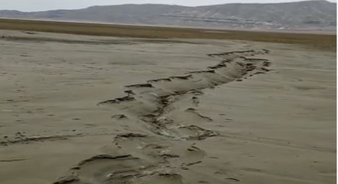 Elazığ’da 17 Şubat’ta meydana gelen deprem sonrası Yolüstü köyünde metrelerce uzanan fay hattındaki zemin sıvılaşması bir vatandaş tarafından görüntülendi.