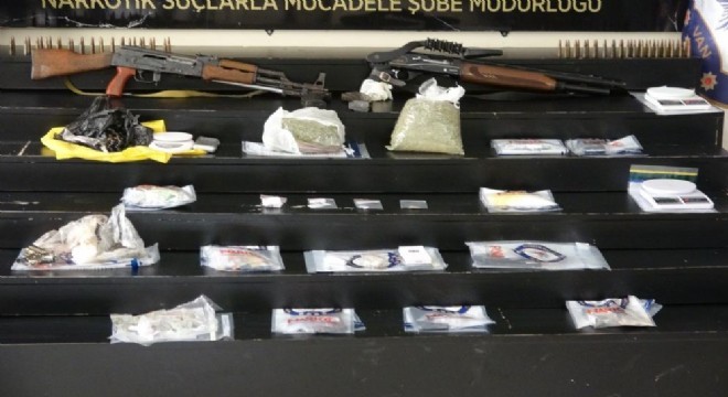 Bugün saat 06.00’da planlı soruşturma çerçevesinde uyuşturucu madde ticareti yaptığı tespit edilen 75 şüphelinin yakalanması ve uyuşturucu başta olmak üzere suç unsurlarının ele geçirilmesi amacıyla 164 ekip, 20 Özel Harekat unsuru, 3 Çevik Kuvvet Timi, 1 helikopter, 1 İHA, 2 dron, 861 personel ve 14 narkotik dedektör köpeğinin katılımı ile 81 adrese eş zamanlı operasyon yapıldığı belirtilerek, “Operasyonda 36.07 gram eroin, 14.01 gram metamfetamin, 1 kilo 508 gram afyon sakızı, 708 gram esrar, 32 adet sentetik ecza hap, 2 adet hassas terazi, 1 adet 7.65 mm çapında tabanca, 1 adet av tüfeği, 1 adet kalaşnikof marka tüfek ve 151 adet fişek ile silaha ait 2 adet şarjör ele geçirilmiştir. Konu ile ilgili 71 şüpheli şahıs yakalanarak gözaltına alınmış olup, yapılan işlemlerin ardından adli makamlara sevki sağlanacaktır. Firari durumda olan şüpheli şahısların yakalanmasına yönelik çalışmalar devam etmektedir” denildi.